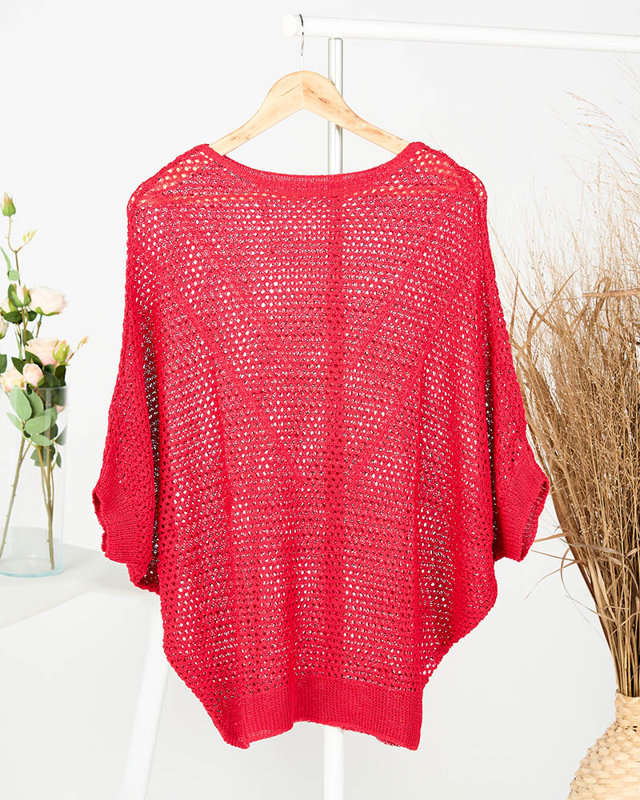Червоний напівпрозорий светр зі спущеними плечима