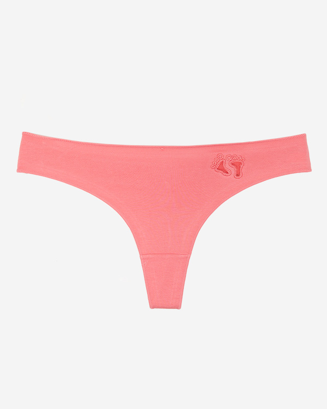 Жіночі коралові бавовняні стринги з вишивкою - Білизна