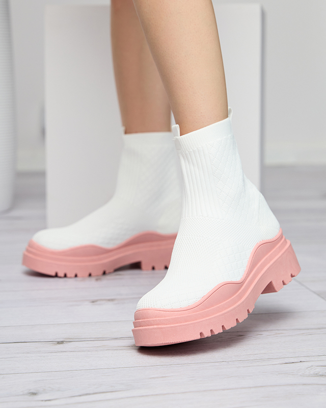 - Стильні жіночі сліпони з тканини. Модель на масивній кольоровій підошві, внутрішньо обшиті тканиною. Ідеальна основа для багатьох повсякденних образів! БІЛО-РОЖЕВЕ ВЗУТТЯ НЕУТЕПЛЕНІ ЧОБОТИ SERITIS