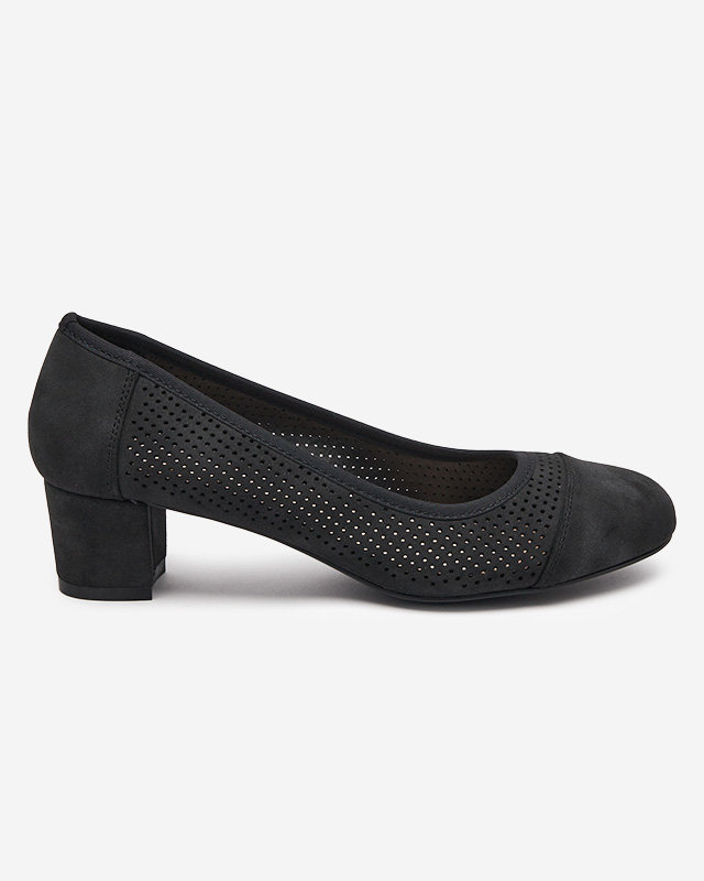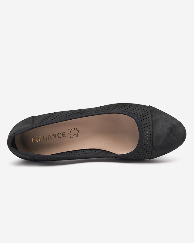 - Класичні жіночі туфлі на низьких підборах з екологічної замші. Устілка виготовлена з натуральної шкіри. Ажурний верх і мигдалевидний ніс додають їм шарму!