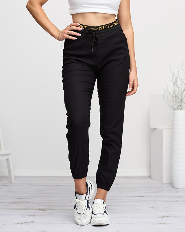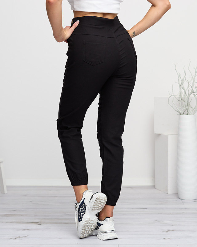 • Жіночі спортивні штани з високою талією з еластичної тканини. Манжети на штанинах, еластична резинка і шнурівка на талії. Модель має 4 кишені. ПРИМІТКА: Точність вимірювання (+/-) 1 см.