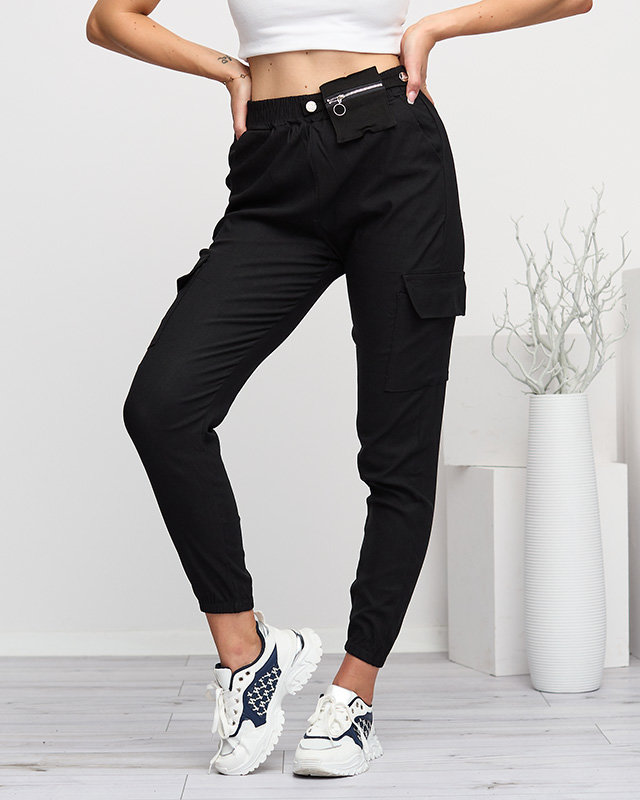 Чорні жіночі штани карго з кишенею що відстібається