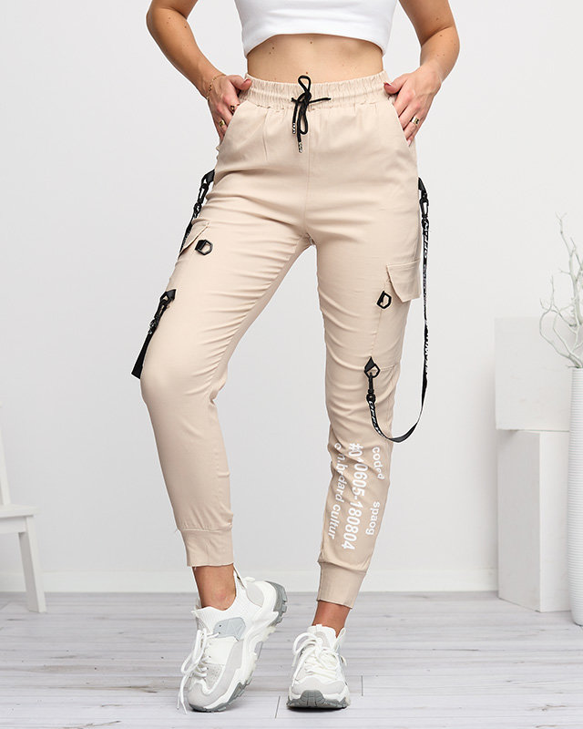 - Штани карго з декоративними та знімними лямками.Виготовлені з бавовни, мають еластичну резинку в поясі та 4 кишені. Внизу штанина прикрашена білим написом. ПРИМІТКА: Точність вимірювання (+/-) 1 см.