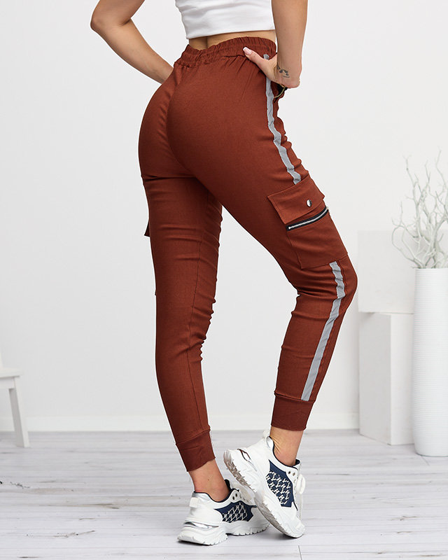 Коричневі жіночі штани зі світловідбиваючими смугами