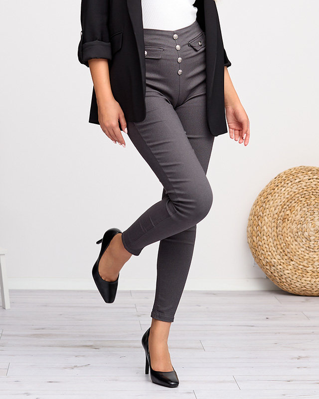 - Жіночі трегінси із завищеною талією. Модель прикрашена гудзиками, має широку резинкув талії, дві кишені ззаду та дві декоративні кишені спереду. ПРИМІТКА: Точність вимірювання (+/-) 1 см.