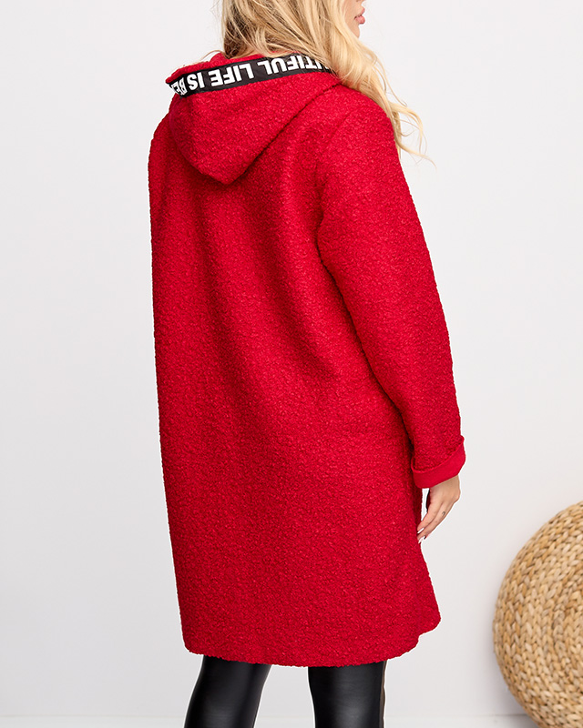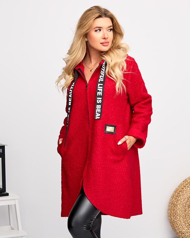 Жіноча бордова куртка пальто з капюшоном - Одяг