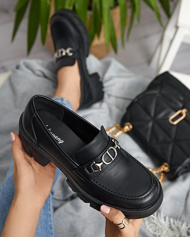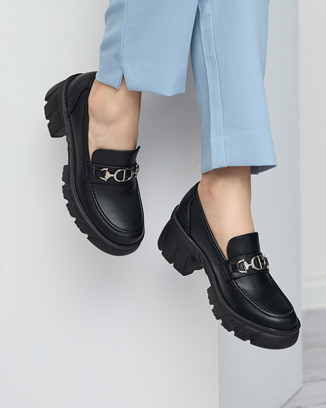 - Стильні жіночі лофери з екологічної шкіри. Модель на масивній підошві, має срібний, металевий декор по верху. Ефектне доповнення до багатьох стилів!