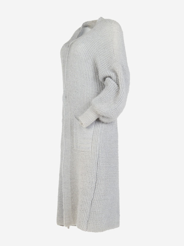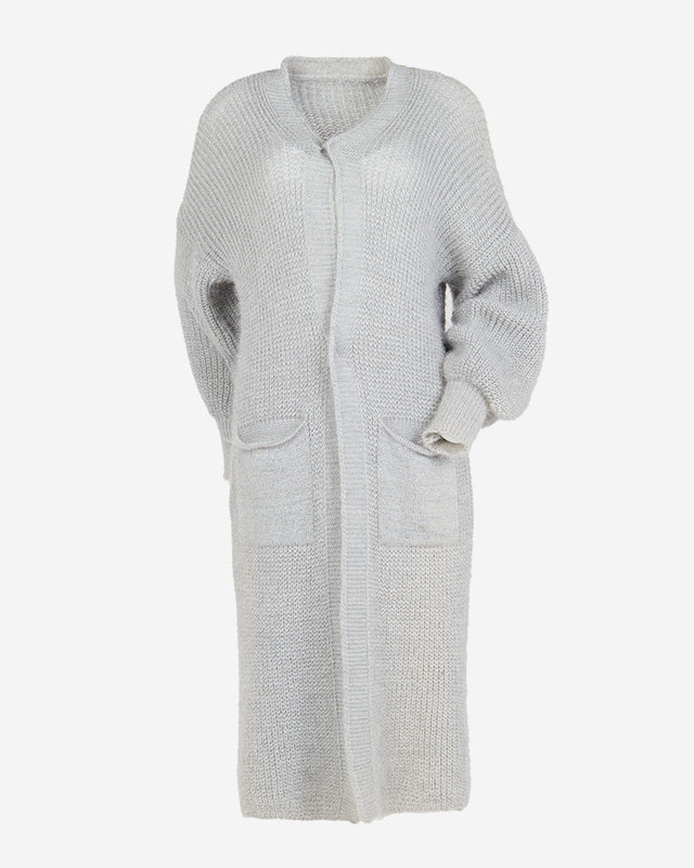 Cвітло-сірий м'який довгий светр-накидка