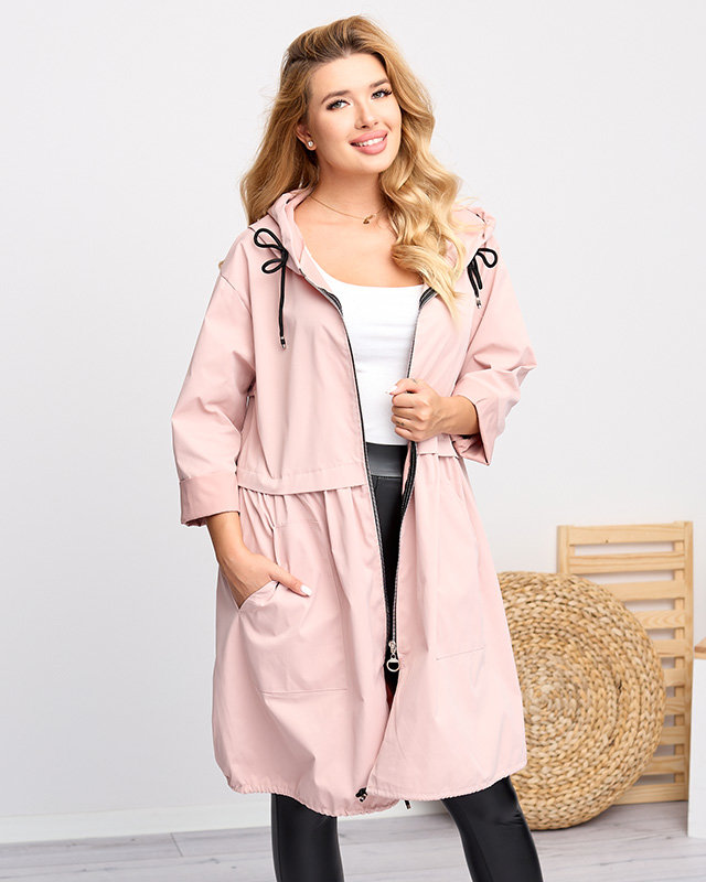 Жіноча довга куртка-вітровка ніжно-рожевого кольору - Одяг