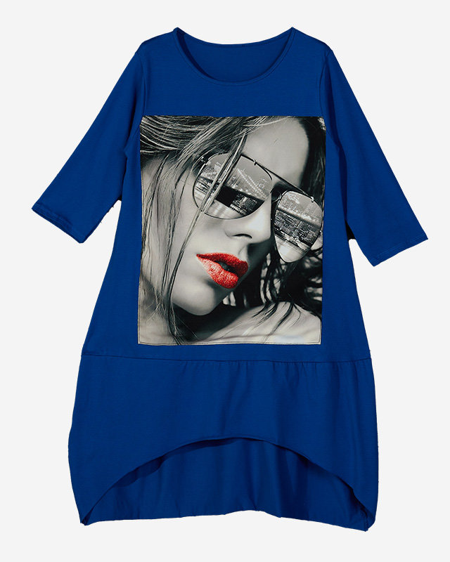 Темно-синє жіноче плаття з принтом і відрізом по низу - Одяг