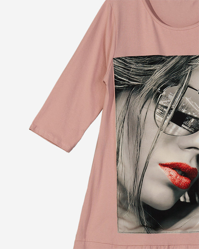Рожеве жіноче плаття з принтом і відрізом по низу - Одяг