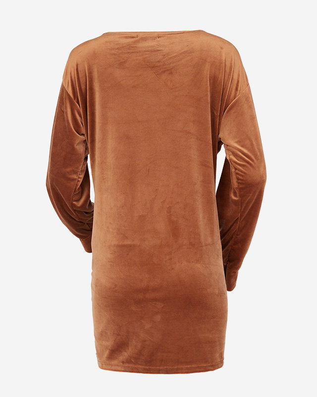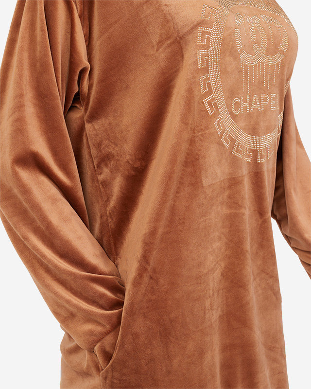 Довга коричнева жіноча туніка з цирконами