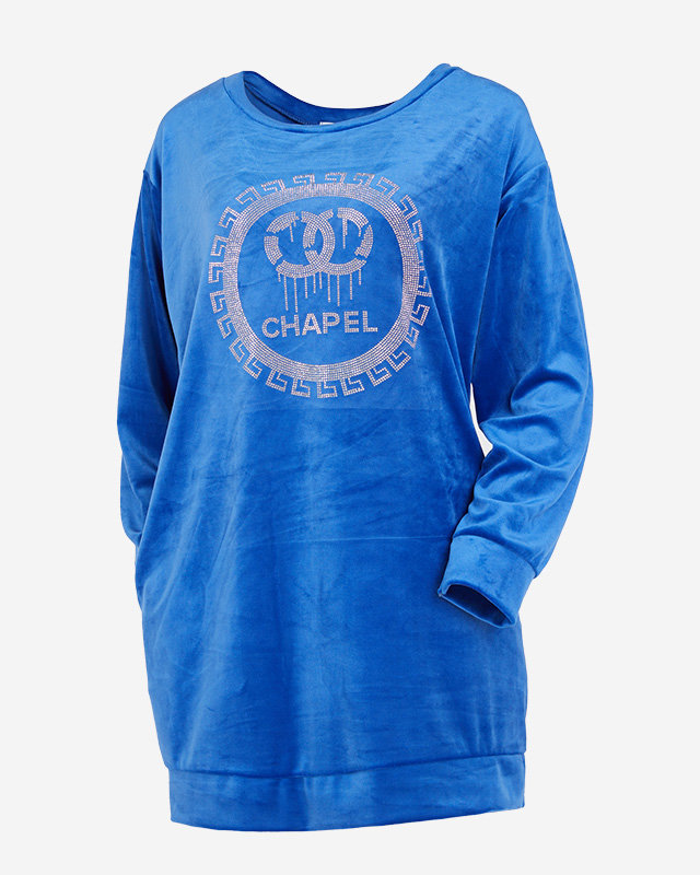 Довга синя жіноча туніка з цирконами