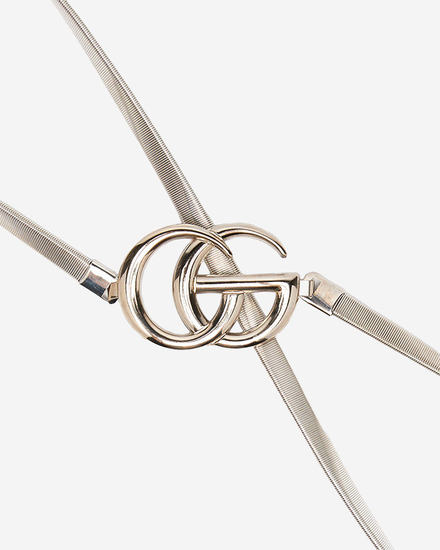 Сріблястий еластичний жіночий ремінь на застібці з буквами