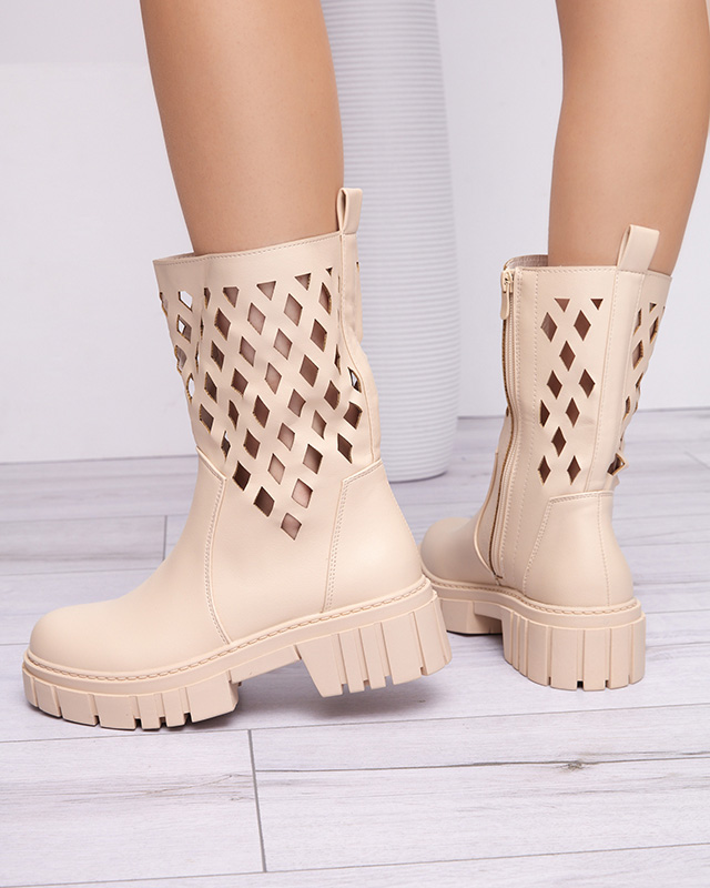 Бежеві ажурні жіночі чоботи на плоскому каблуці Yoki
