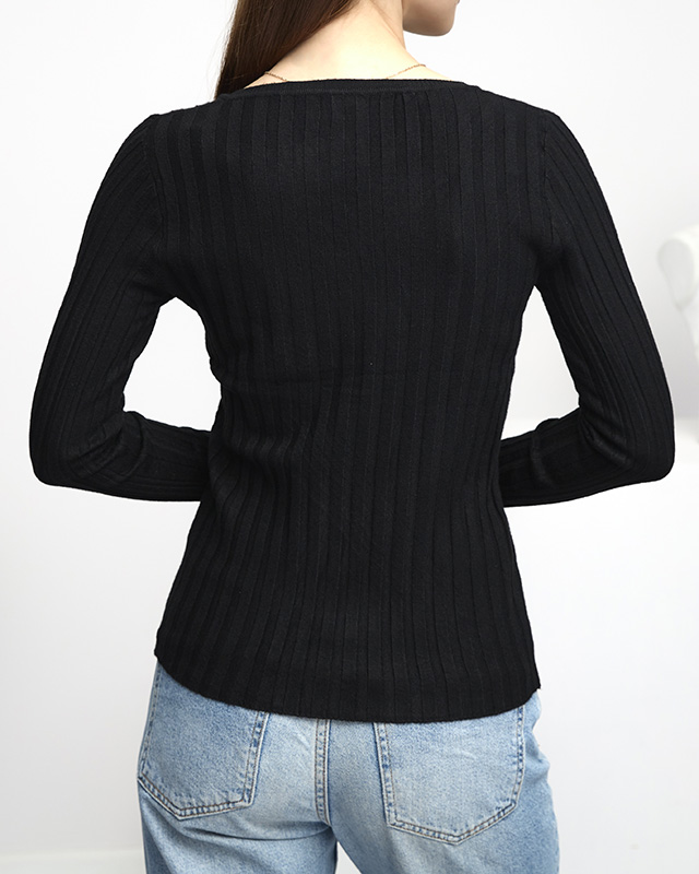 Чорний жіночий светр в рубчик