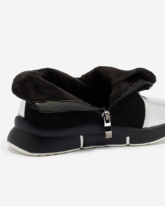 - Чоботи для дівчинки на плоскій підошві в спортивному стилі, виготовлені з еко замші та еко шкіри. Зсередини взуття утеплене приємним на дотик хутром. Гарний вибір для поганої погоди! ЧОРНО-СРІБЛЯСТЕ ЗИМОВЕ ВЗУТТЯ ERRONTI УТЕПЛЕНІ ЧОБОТИ