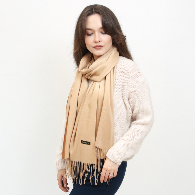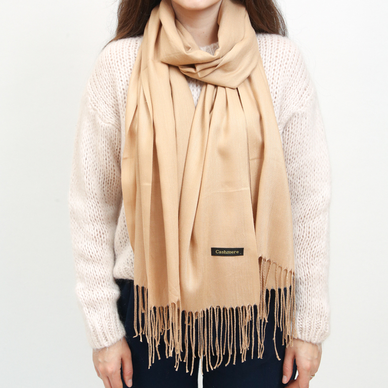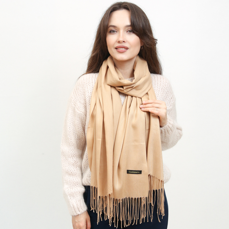 - Нестаріючий однотонний жіночий шарф з м'якої тканини, оздоблений китицями. Цей красивий шарф просто зобов'язаний бути у вашій шафі!