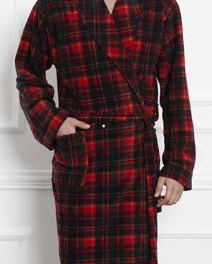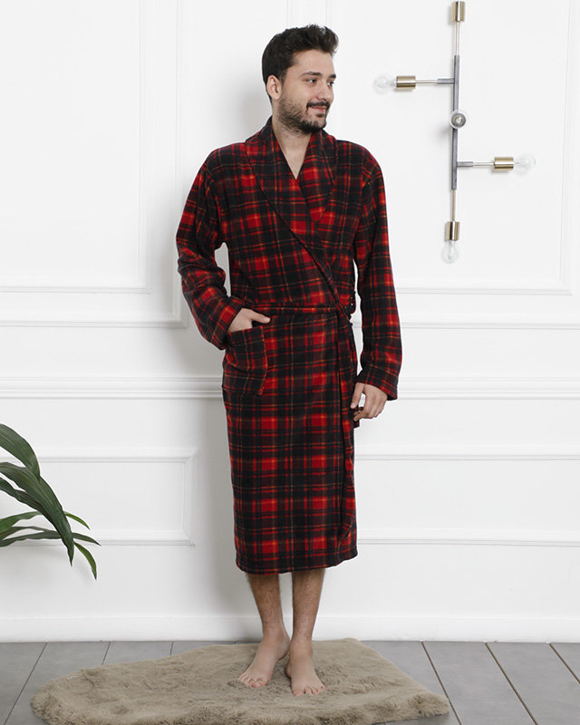 Червоно-чорний чоловічий халат в клітинку - Одяг