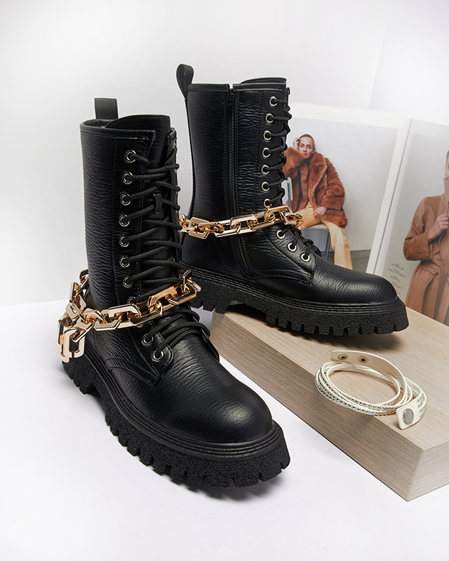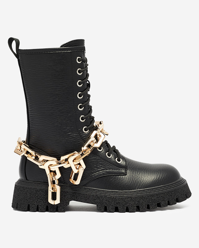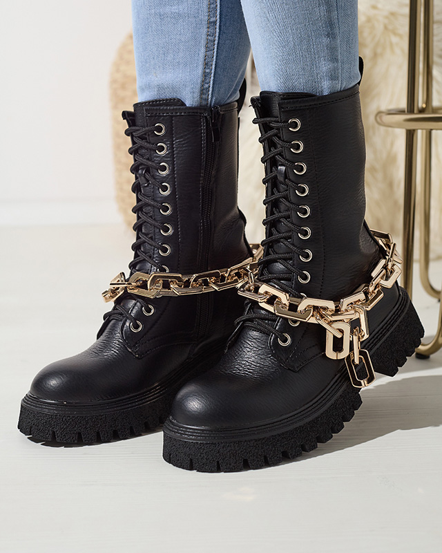Чорні жіночі черевики з золотим ланцюжком Azerik - Взуття