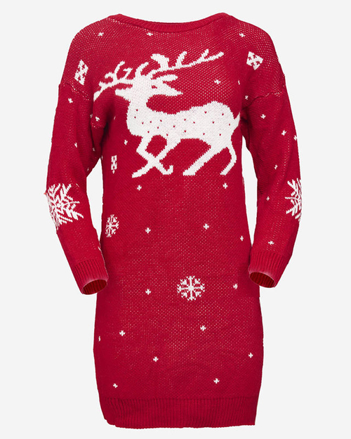 Червона жіноча сукня-светр з різдвяним принтом - Одяг