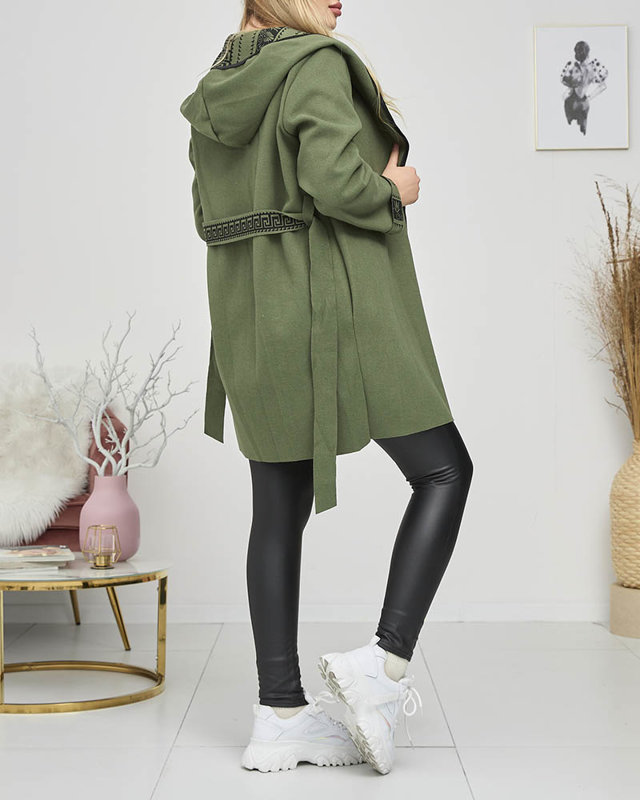 Темно-зелене жіноче покривало а-ля пальто з орнаментом - Одяг