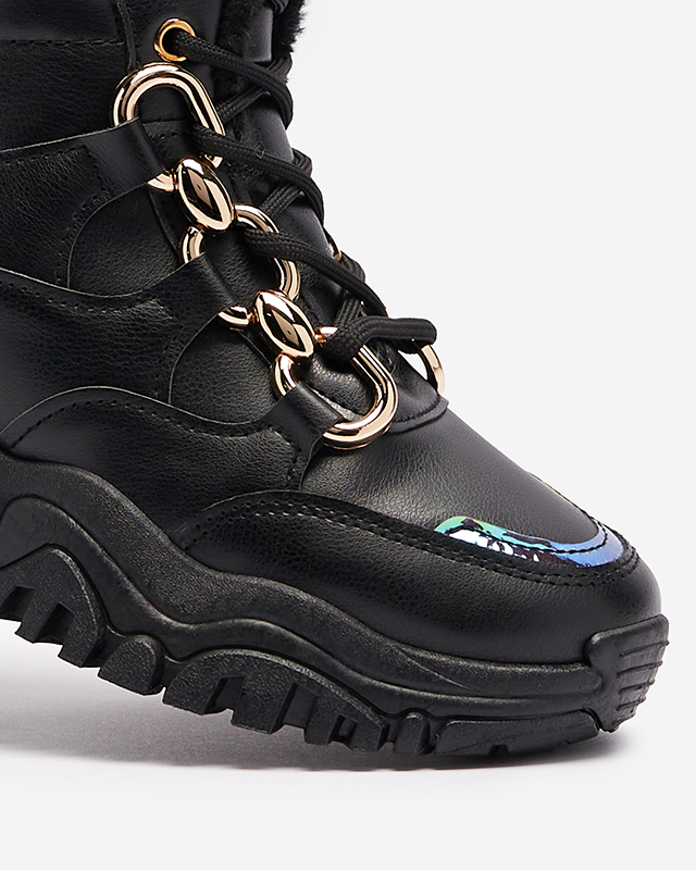- Жіночі утеплені кросівки на суцільній підошві, в стилі снігоступів. Верх на шнурівці з екологічно чистої шкіри. Супер доповнення до ваших зимових повсякденних образів! ЧОРНІ УТЕПЛЕНІ КРОСІВКИ ЗИМОВІ ЧЕРЕВИКИ НЕПОЛЕ