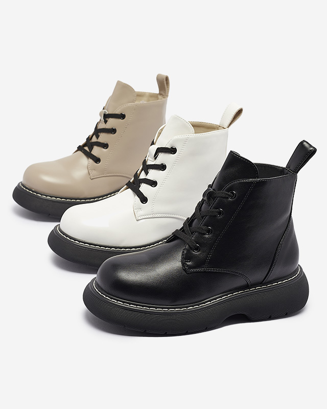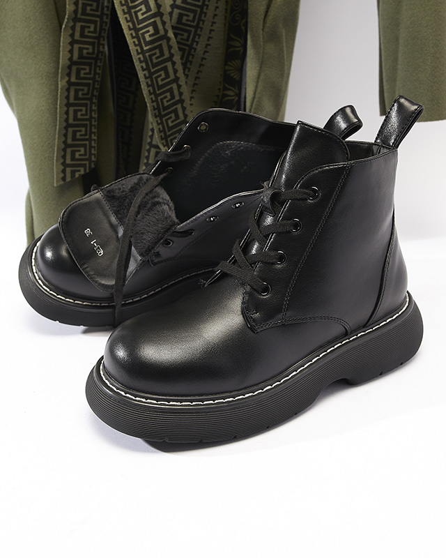 - Мега модні жіночі черевики з екошкіри. Чоботи на шнурівці та мають потовщену гумову підошву. Всередині утеплені м'яким хутром. Ідеальний варіант для осені! ЧОРНІ УТЕПЛЕНІ ЧОБОТИ GETYSA