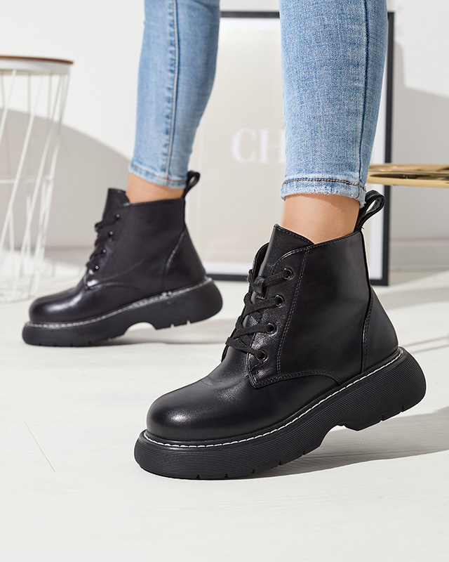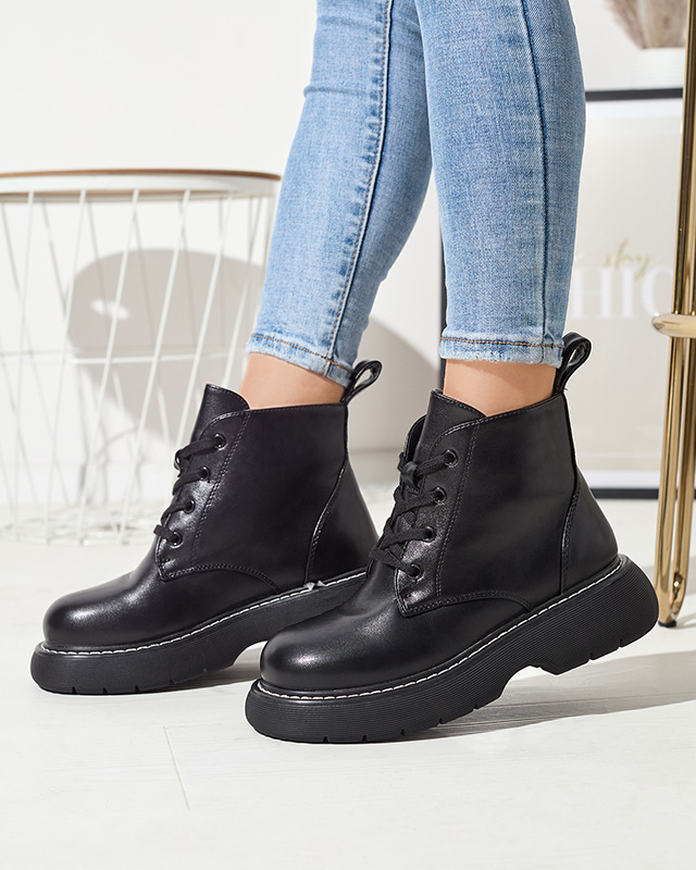 Чорні жіночі черевики з екошкіри на суцільній підошві Getys - Взуття