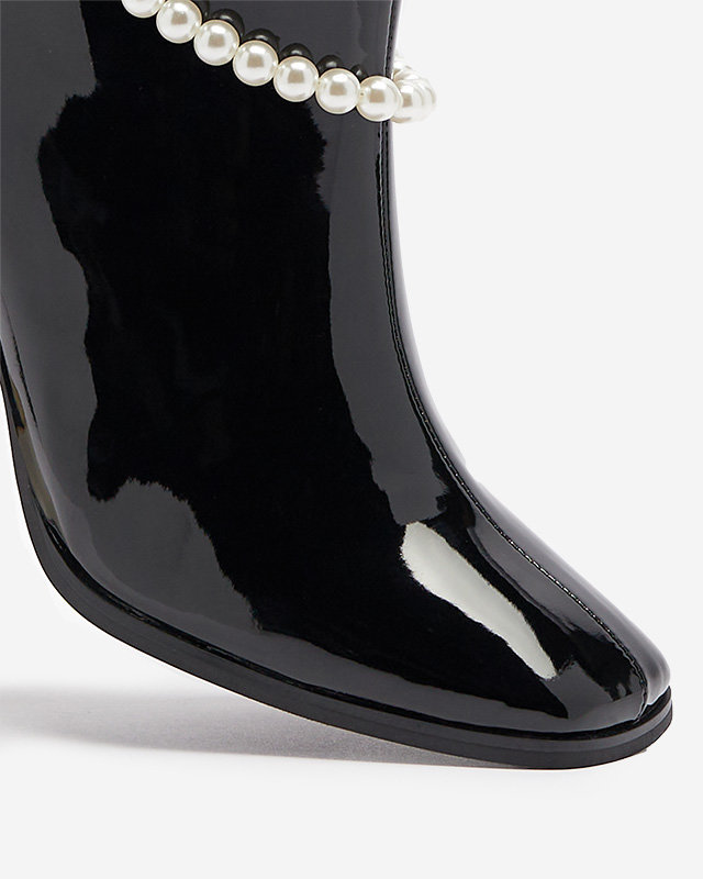 Чорні лаковані жіночі високі чоботи на шпильці Rassla- Взуття