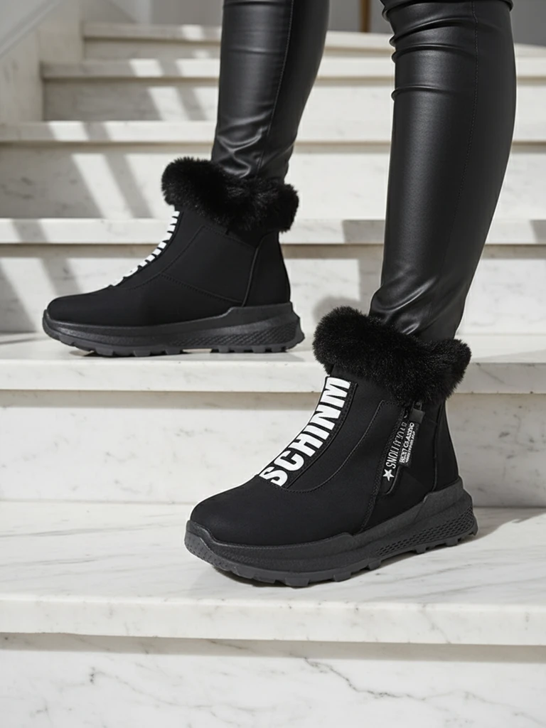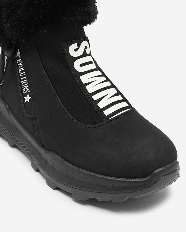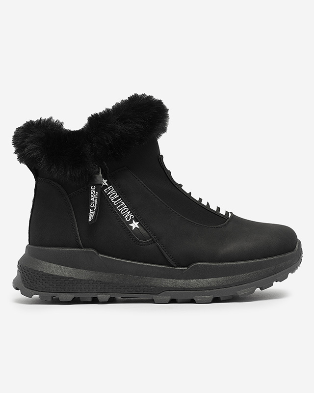 • Жіночі ботильйони виготовлені з екологічної шкіри, внутрішня частина утеплена м'яким хутром. Спереду халяви еластична вставка з декоративним написом, взуття застібається на блискавку. ЧОРНІ БОТИЛЬЙОНИ ЖІНОЧІ УТЕПЛЕНІ SCHERR