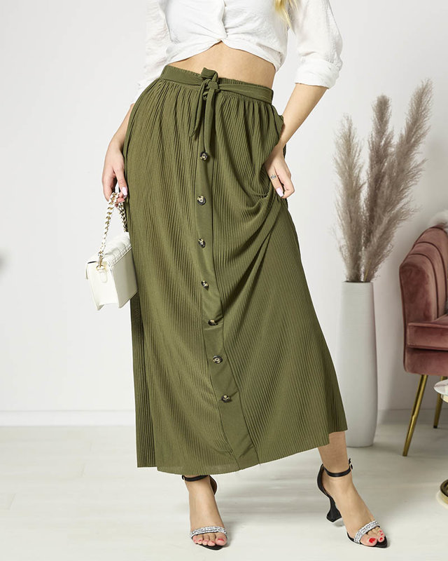 Темно-зелена жіноча плісирована спідниця максі на ґудзиках - Одяг