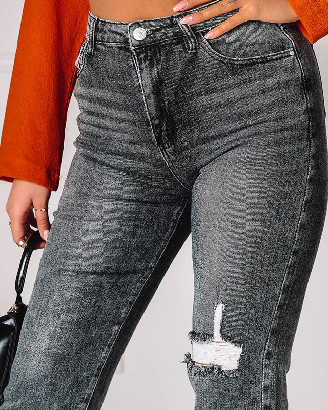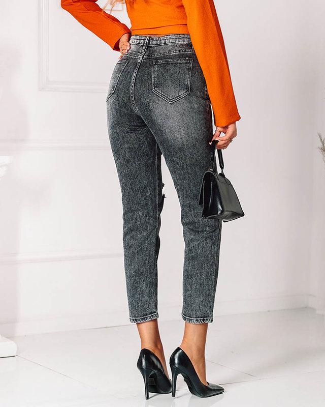 Жіночі сірі джинсові штани з потертостями - Одяг