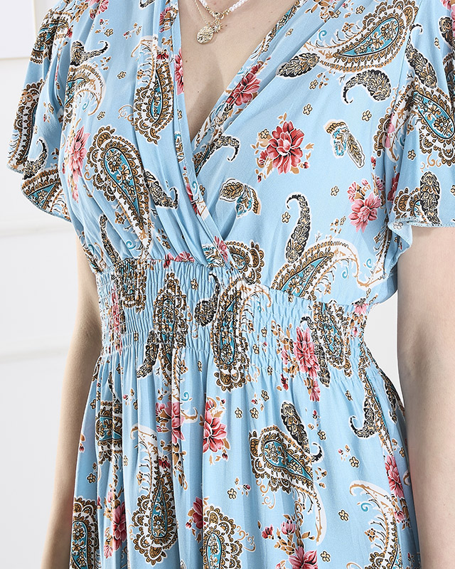Жіноча сукня міді з візерунком синього кольору - Одяг