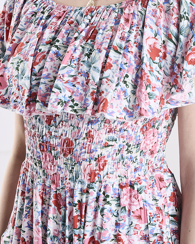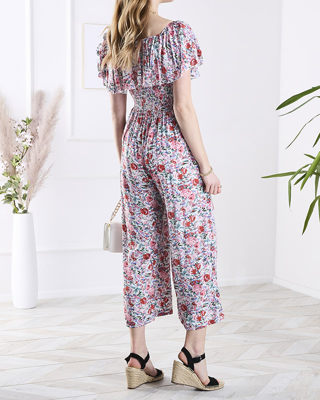 Біло-рожевий довгий жіночий комбінезон з квітковим візерунком - Одяг