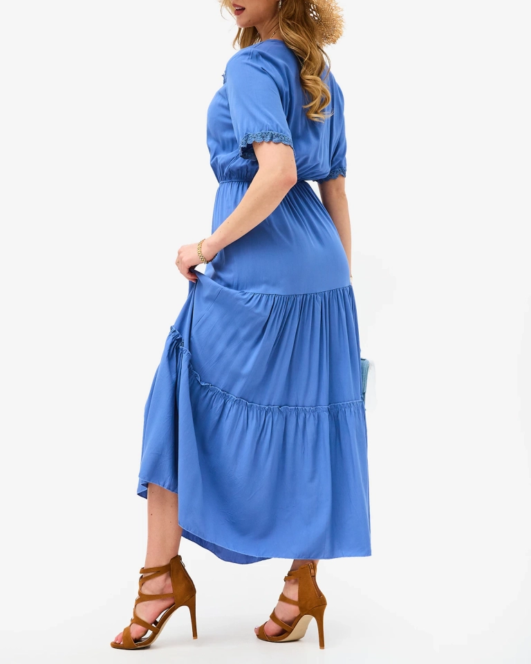 Синя довга жіноча сукня з коротким рукавом - Одяг