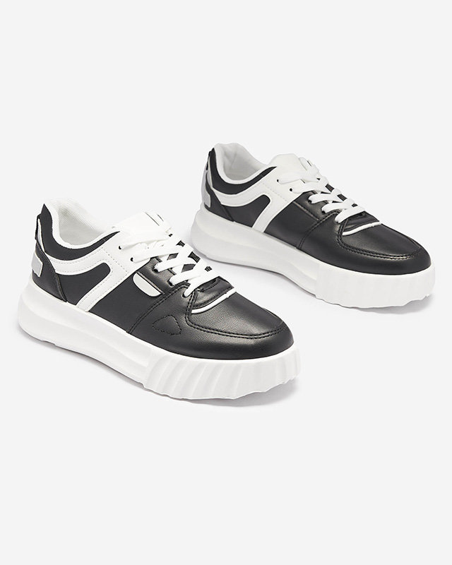 Жіночі повсякденні спортивні туфлі з екошкіри чорного кольору з білими вставками Netiris - Взуття