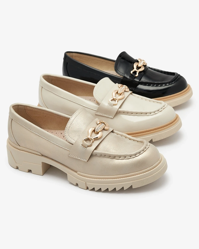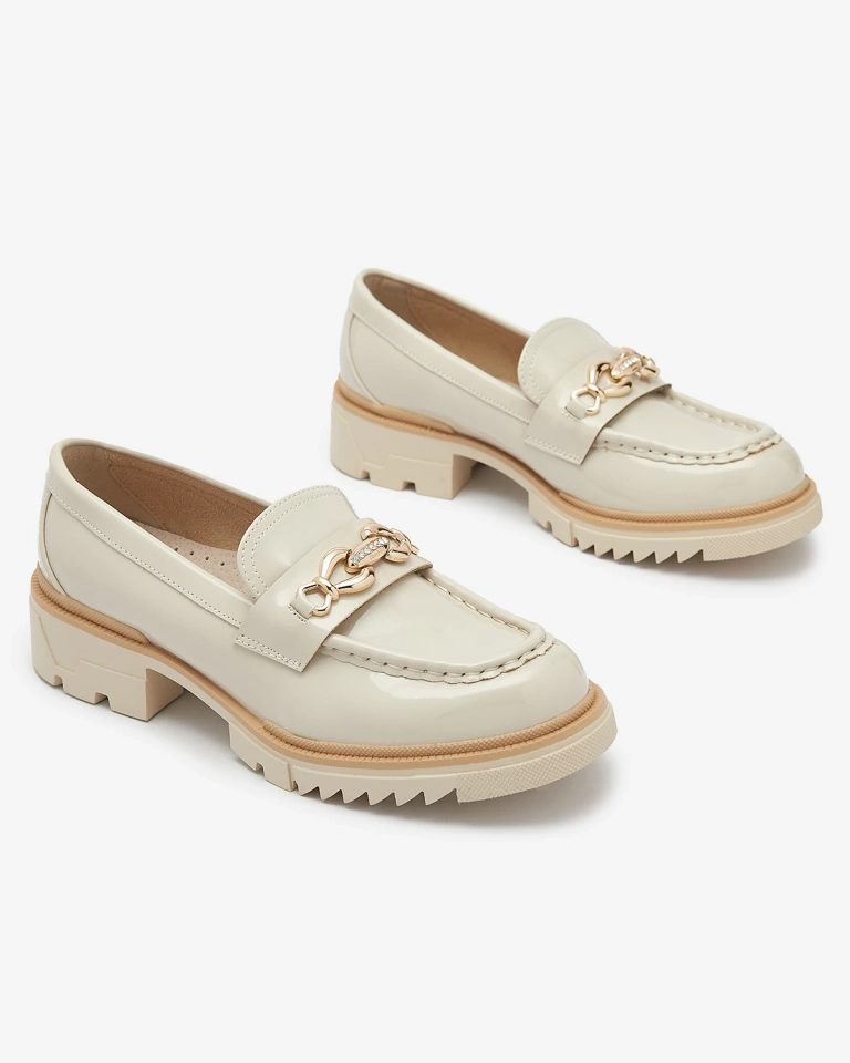 Бежеві лаковані жіночі мокасини з ланцюжком Sotella - Взуття