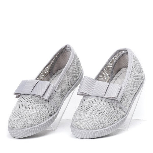 - Сірі жіночі сліпони для тенісу. Матеріал виготовлення верху та устілки - тканина. Кеди декоровані бантиком. Примітка: виріб має подряпини на матеріалі.