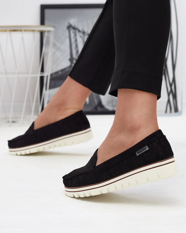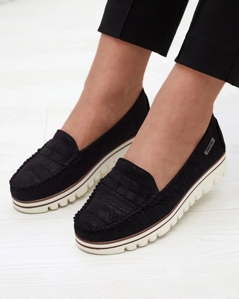 Чорні жіночі мокасини з блискучим покриттям Metiga - Взуття