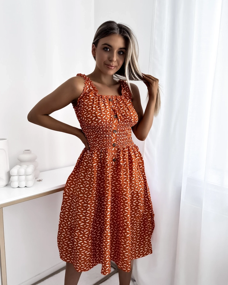 Жіноча сукня до коліна з принтом помаранчевого кольору - Одяг