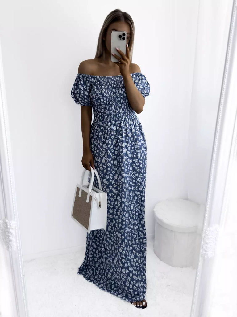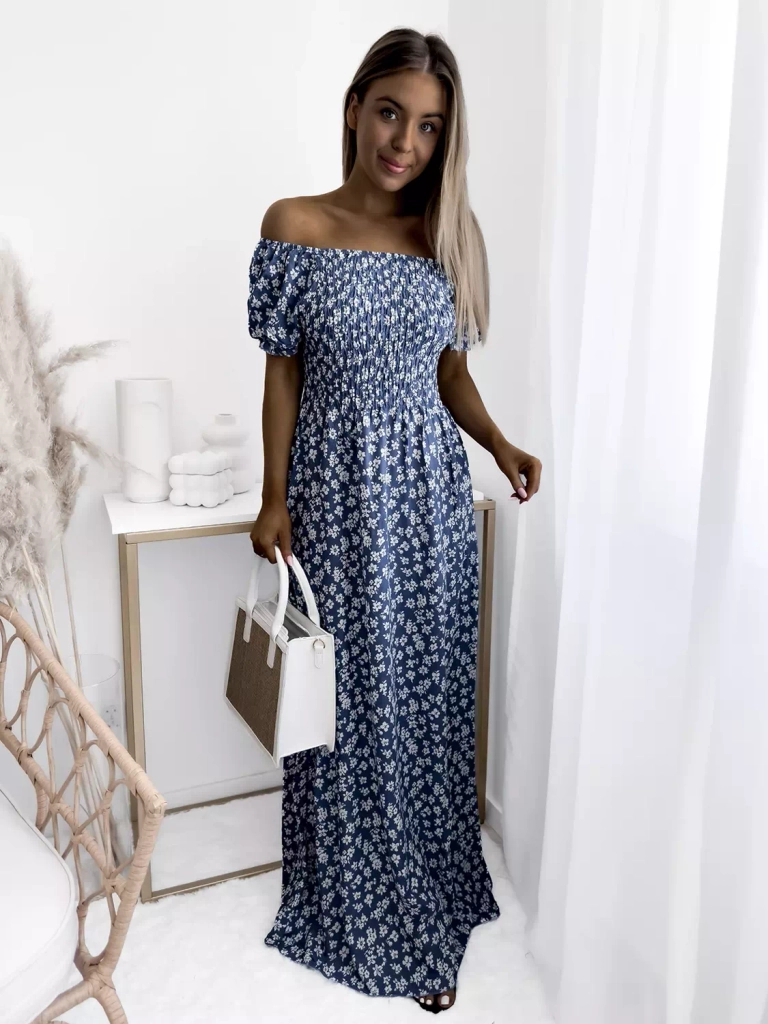 Синя жіноча сукня максі з квітковим візерунком - Одяг