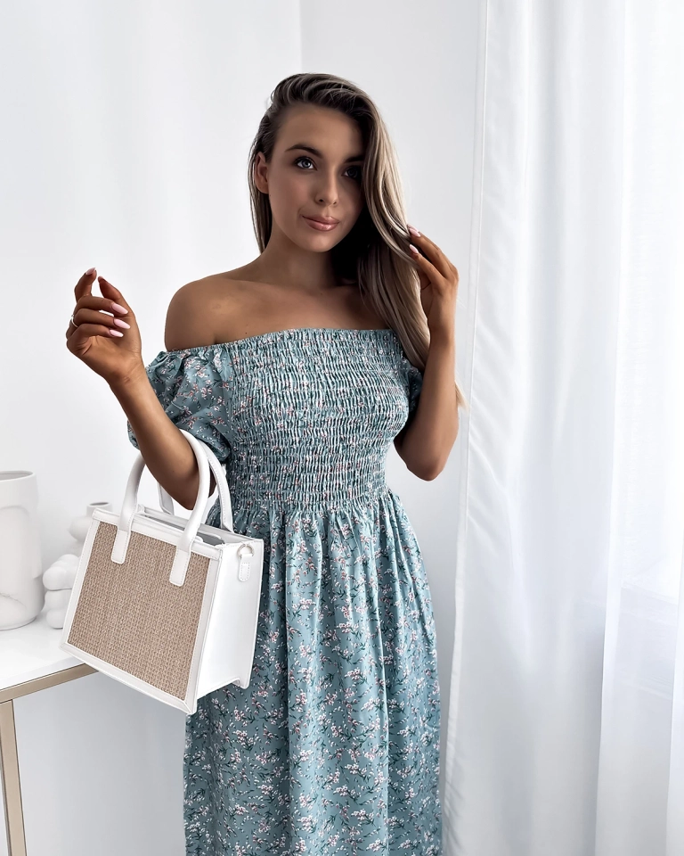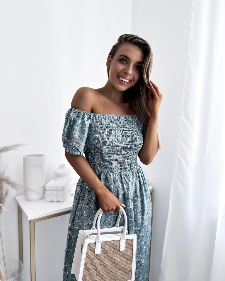 • Жіноча сукня міді в квіточку довжиною міді. Модель з коротким рукавом, на широкій резинці по лінії грудей. Виріб виконаний з легкої бавовняно-поліефірної тканини. Must have на літо! ПРИМІТКА: Похибка вимірювання (+/-) 1 см