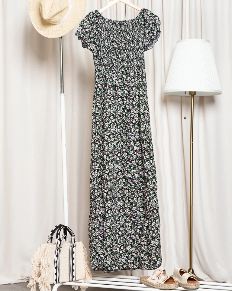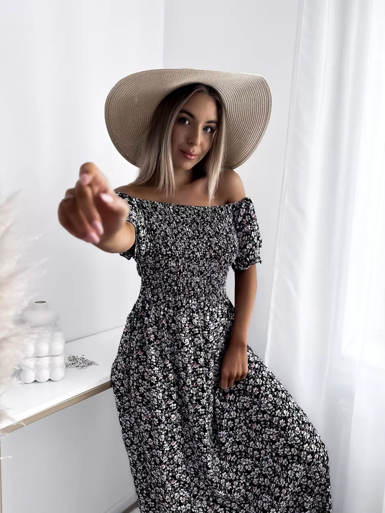 - Красива жіноча квітчаста сукня довжини міді. Модель з коротким рукавом, на широкій резинці на грудях. Виріб виконаний з легкої бавовняно-поліефірної тканини. Must have на літо! ПРИМІТКА: Похибка вимірювання (+/-) 1 см