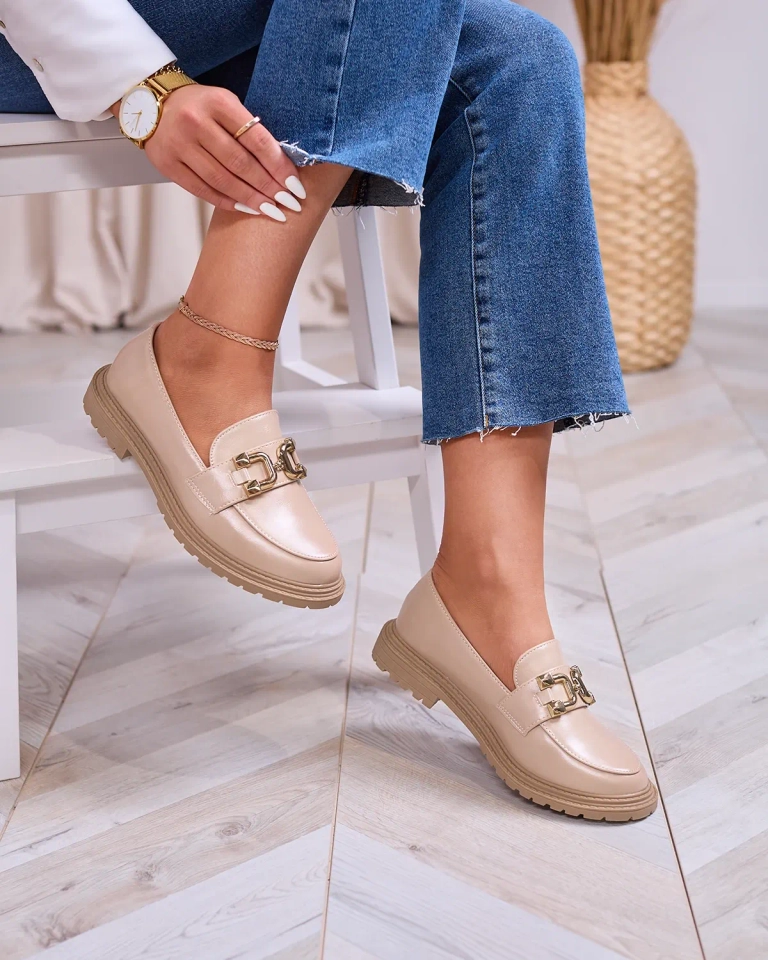Royalfashion Світло-коричневі жіночі мокасини із золотистим декором Aderica