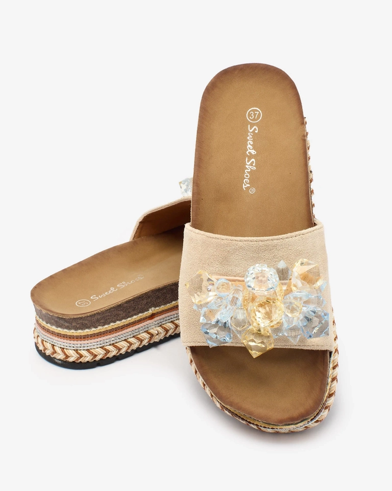 Жіночі шльопанці Royalfashion з кристалами бежевого кольору Bollah