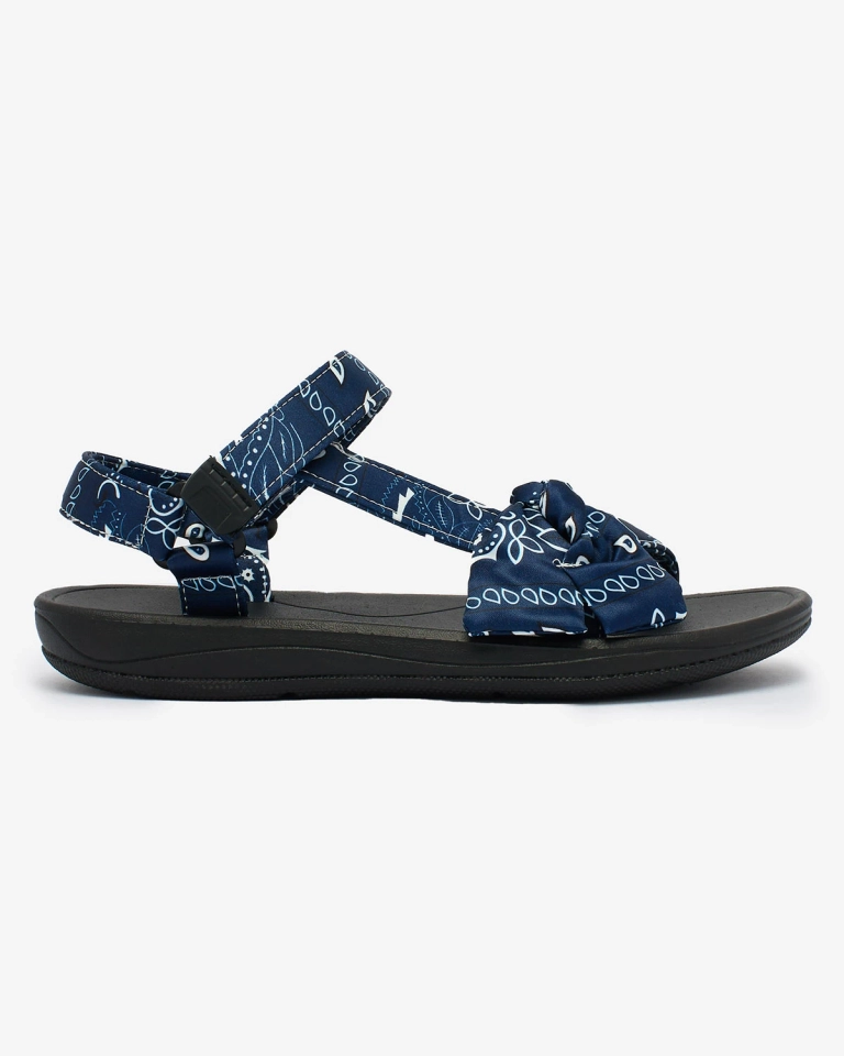 - Спортивні жіночі босоніжки на гумовій підошві. Ремінці виконані з тканинного матеріалу з принтом і декоровані бантиком. Представлене жіноче взуття застібається за допомогою ремінців на липучках. Вони добре тримаються на нозі!