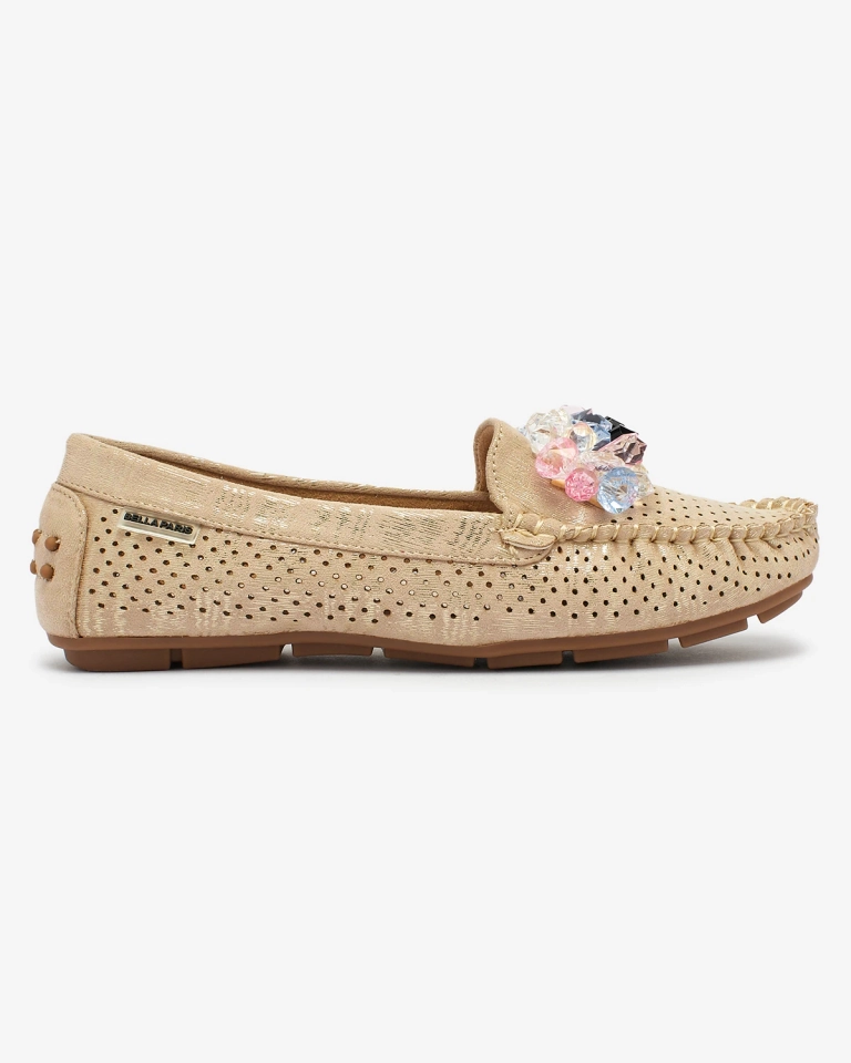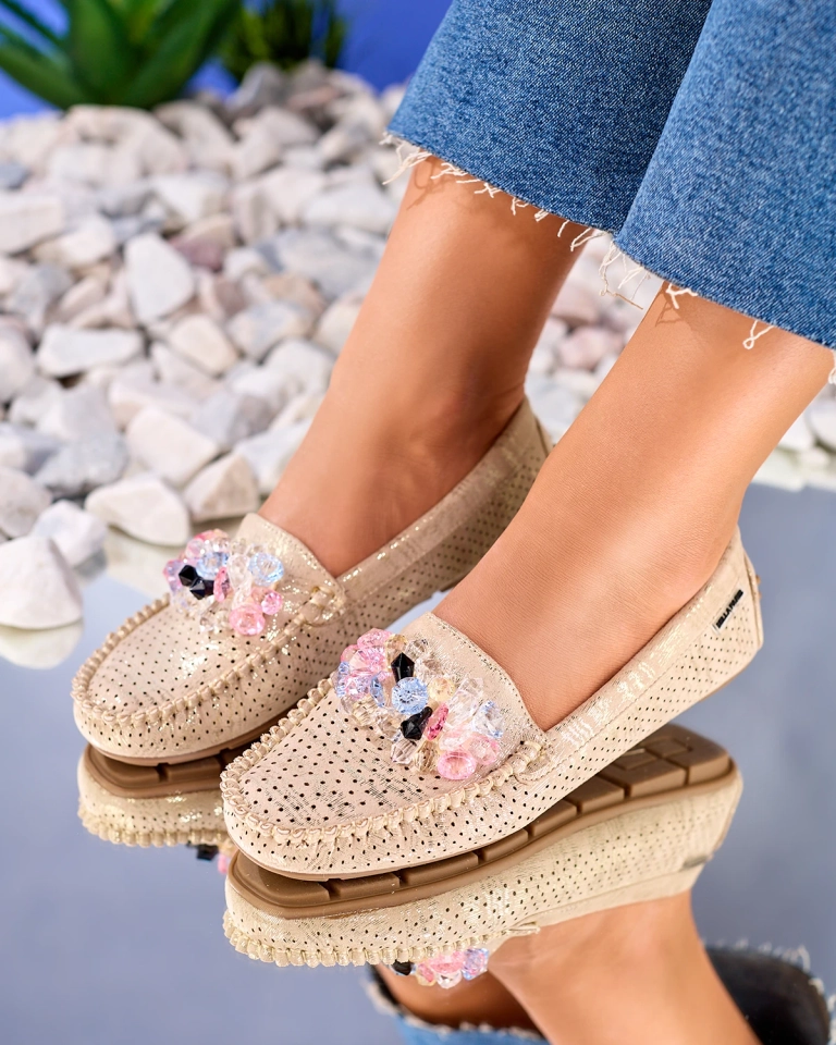 Royalfashion Ажурні бежеві жіночі мокасини з декоративними кристалами Cizzas