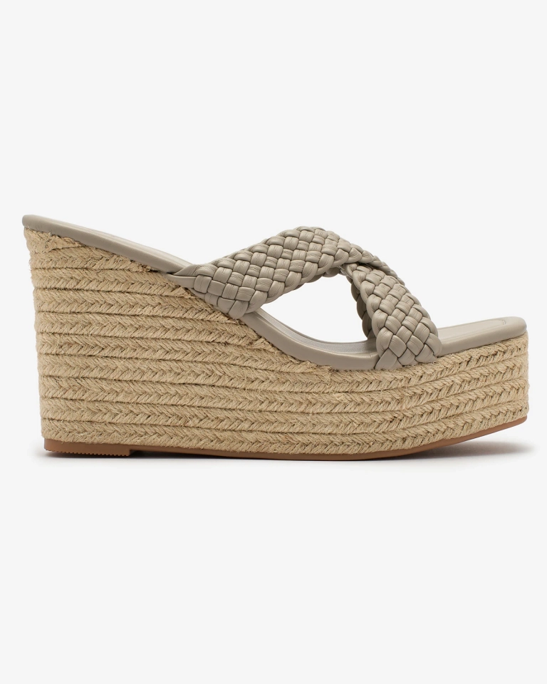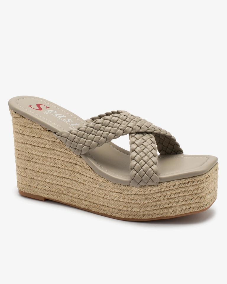 - Жіночі шльопанці з екошкіри, декоровані плетеними ремінцями. Високий якір обтягнутий джутовим шнуром, що додає шарму та характеру. Насолоджуйтесь комфортом та стилем у цій моделі на відпочинку!