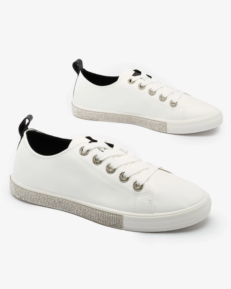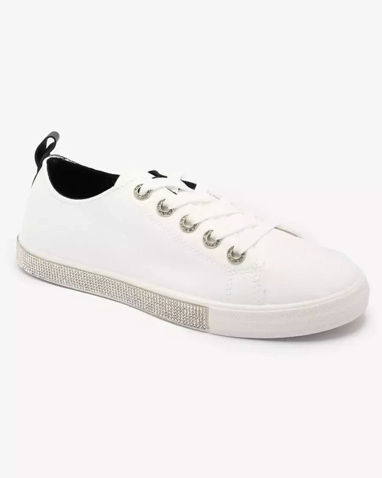 OUTLET Royalfashion Білі жіночі кеди з цирконами та чорними вставками Zutifa